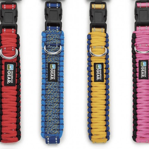 Adjustable Dog Collars are available in a variety of bright colors. Each collar is made of tough fabric with a nickel-plated swivel clip.