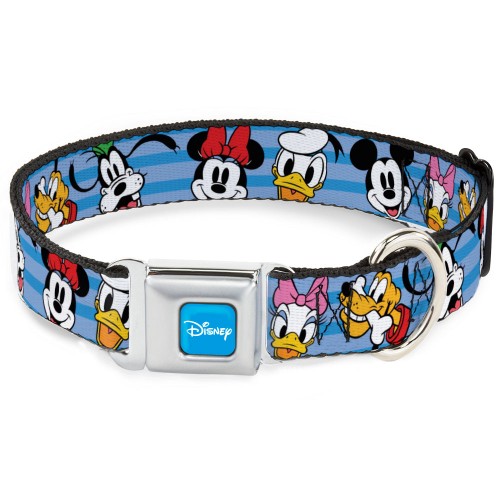 Alice Keyhole Full Color Black/White Seatbelt Buckle Collar – Alice in Wonderland Poses/Clock/Bottle Diamond/Stripe Black/White/Blues