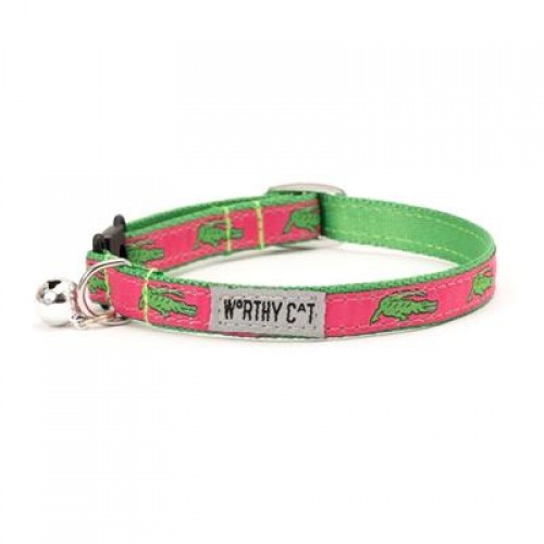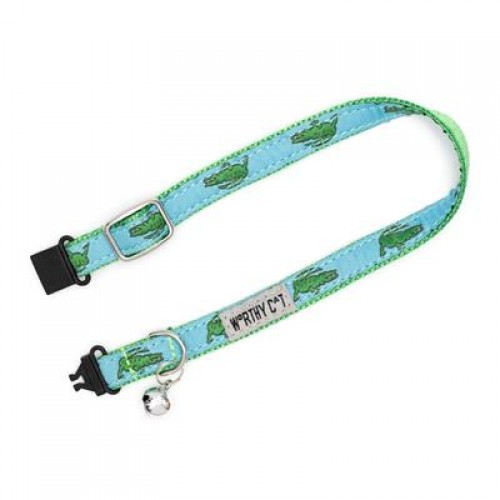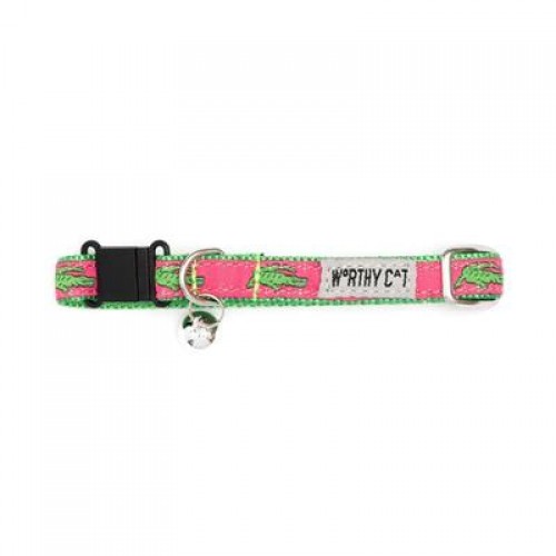 The Alligators Cat Collar from The Worthy Dog is the purrfect mix of style and function. Made with durable nylon webbing and featuring a safety snap clasp and removable bell, this adjustable collar keeps your feline friend safe and stylish. (And helps you find them when they’re up to no good!) Measures 8-12 inches in length and 1/2 inch in width.