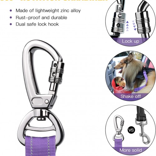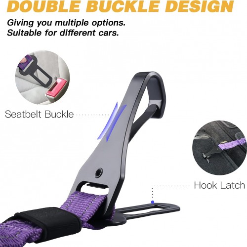 AUBELL Dog Seat Belt for Car,2 Pack Set 3-in-1 Adjustable Reflective Bungee Heavy Duty Dog Car Harness Tether with Clip Hook Latch & Buckle,Swivel Zinc Alloy Carabiner,Black+Purple
