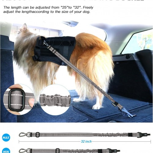 - Elastic Buffer Design – AUBELL dog seatbelt top rope is made of High-quality bandages, strong elasticity can protect dogs from sudden braking or sharp turns. It can be adjusted from 25″ to 32″.