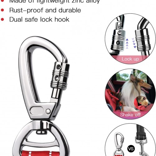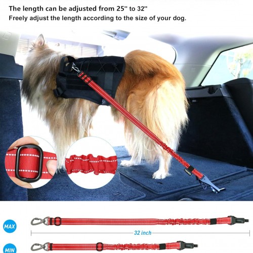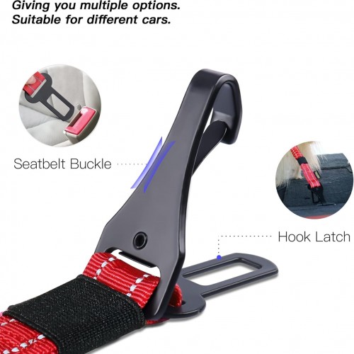 AUBELL Dog Seat Belt for Car,Updated 3-in-1 Adjustable Reflective Bungee Heavy Duty Dog Car Harness Tether with Clip Hook Latch & Buckle,Swivel Zinc Alloy Carabiner,Red