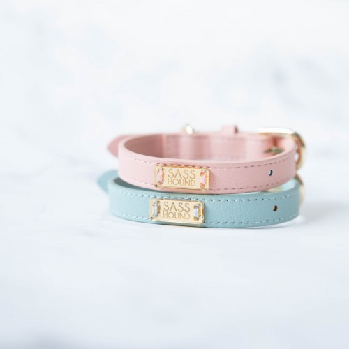 Our Vegan Leather collars are stylish and sophisticated for every fur baby. They are designed to be thin and light weight with 15mm thickness, soft touch finish and comfortable to wear. Comes with a light gold hardware finish and each have 5 holes to adjust accordingly. These Collars are waterproof and can be easy cleaned.