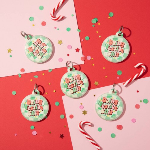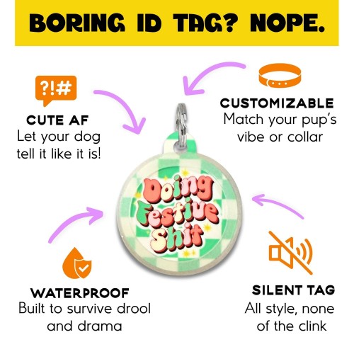 🎄 Add a little holiday cheer to every walk! These lightweight, silent dog tags feature vibrant printed designs that are both eye-catching and full of personality. Perfect for collars, harnesses, or gifting to your favorite pet parent 🎁 — they’re sure to make everyone laugh and smile this holiday season! ✨ Please note: These tags are NOT enamel metal. Each tag features a unique QR code printed on the back. Customers simply scan and activate it using the included instructions to create a free online profile with their name, phone, and email. No app or subscription required — it’s fast, easy, and secure. 2️⃣ COLLAR CHARM – The design is printed on both sides for a stylish, double-sided look. Collar charms cannot be personalized. Customer’s love: • Lightweight ✅ Silent ✅ Waterproof ✅ • Perfect for comfy, all-day wear — no jingling, no bulk! TAG SIZE: 1.25” wide x 1.5” tall; 1.5mm thick MATERIALS: Coated recycled aluminum ♻️ 🇺🇸 HANDMADE IN THE USA Q