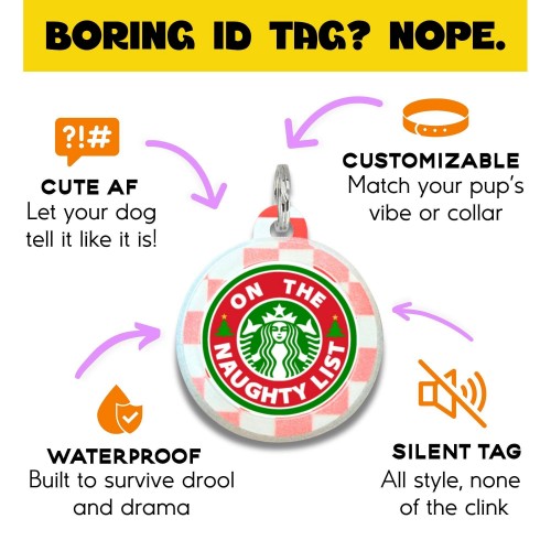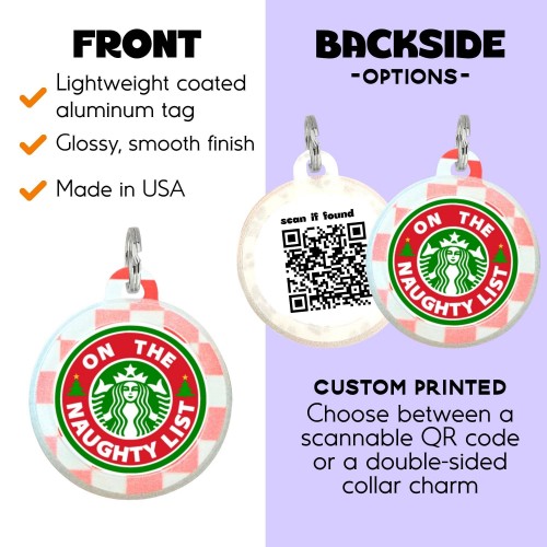 🎄 Add a little holiday cheer to every walk! These lightweight, silent dog tags feature vibrant printed designs that are both eye-catching and full of personality. Perfect for collars, harnesses, or gifting to your favorite pet parent 🎁 — they’re sure to make everyone laugh and smile this holiday season! ✨ Please note: These tags are NOT enamel metal. Each tag features a unique QR code printed on the back. Customers simply scan and activate it using the included instructions to create a free online profile with their name, phone, and email. No app or subscription required — it’s fast, easy, and secure. 2️⃣ COLLAR CHARM – The design is printed on both sides for a stylish, double-sided look. Collar charms cannot be personalized. Customer’s love: • Lightweight ✅ Silent ✅ Waterproof ✅ • Perfect for comfy, all-day wear — no jingling, no bulk! TAG SIZE: 1.25” wide x 1.5” tall; 1.5mm thick MATERIALS: Coated recycled aluminum ♻️ 🇺🇸 HANDMADE IN THE USA