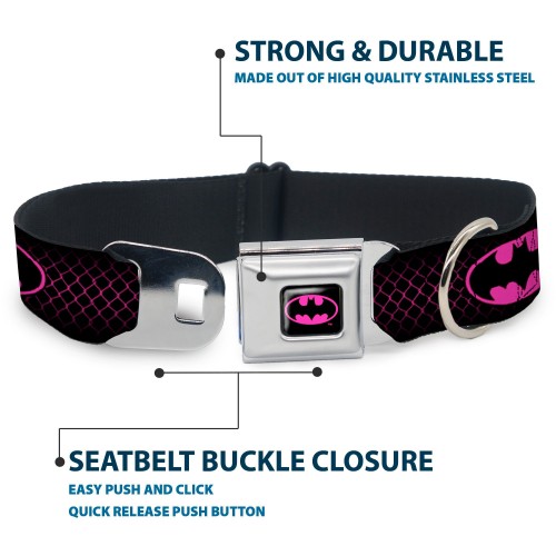 Batman Shield Full Color Black/Hot Pink Seatbelt Buckle Collar – Batman Shield/Chainlink Black/Hot Pink