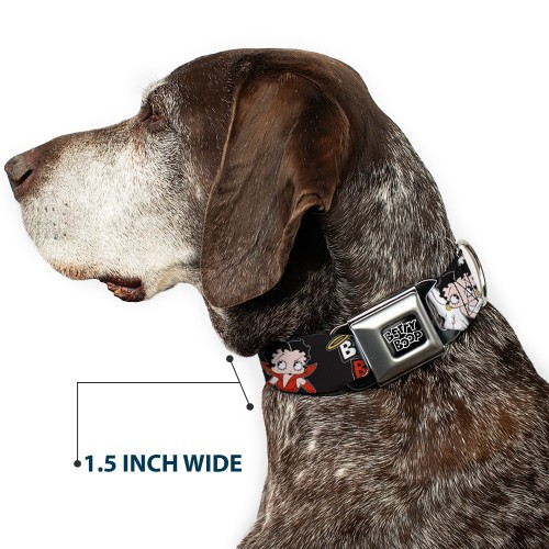 BETTY BOOP Text Heart Logo Full Color Black/White Seatbelt Buckle Collar – BETTY BOOP Angel and Devil Poses with Text Black/White/Red