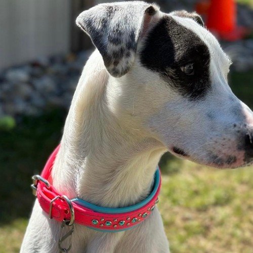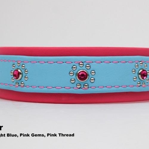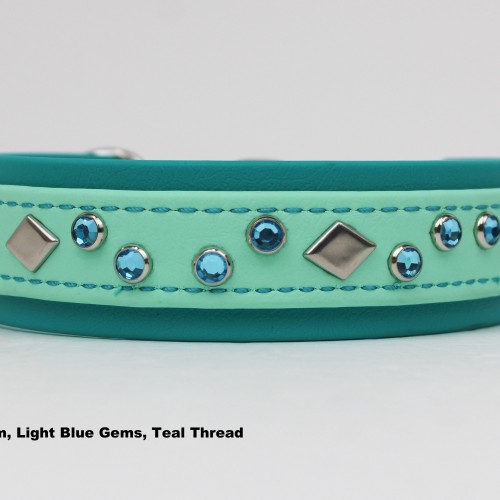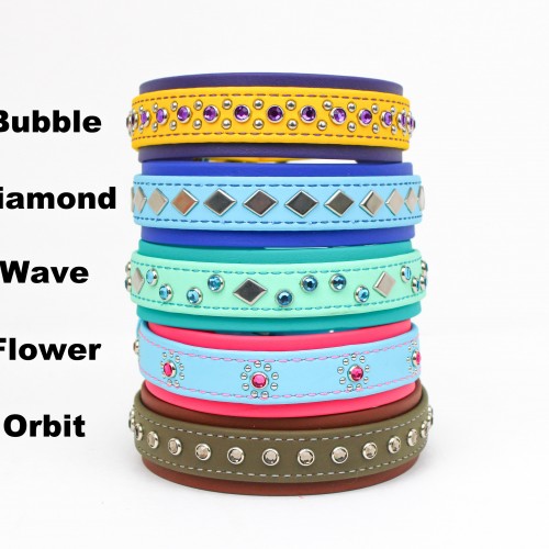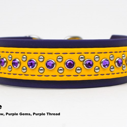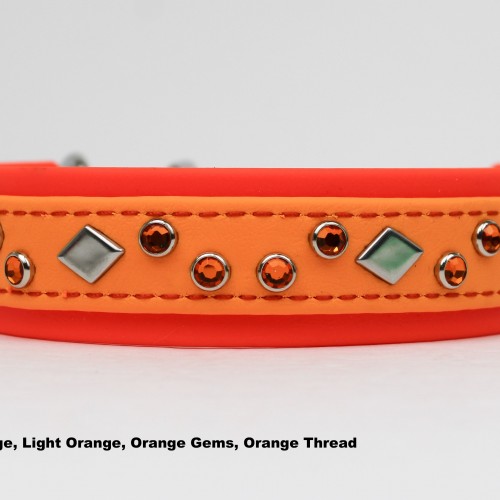 Our BioThane Bling Collars are made from the same original BioThane as our other products, with a little sparkle! They are easy to clean, durable and waterproof. We use BioThane Beta 520 Super Heavy material.