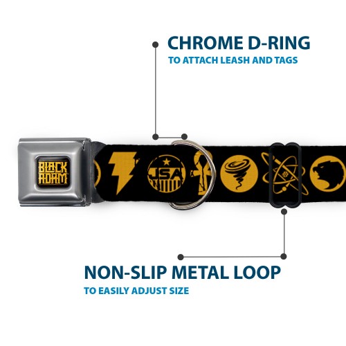 BLACK ADAM Title Logo Full Color Black/Yellows Seatbelt Buckle Collar – Black Adam Justice Society Icons Black/Orange