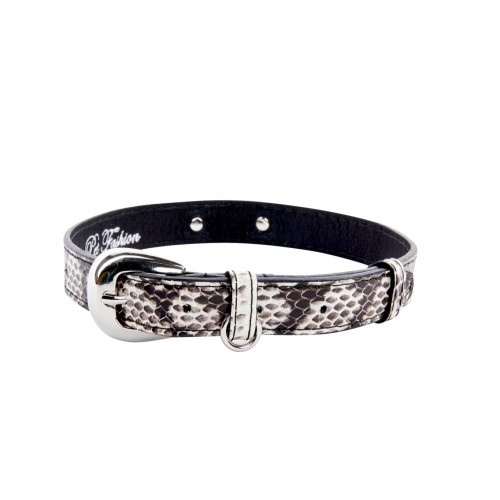 Black & White Viper Snake Collar With Silver Oval Italian Hardware