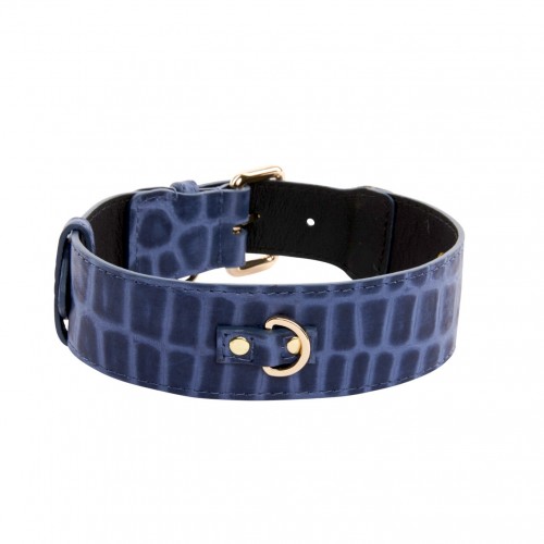 Be the first to review “Blue Embossed Croc Italian Leather Collar With Gold Classic Hardware” Cancel reply