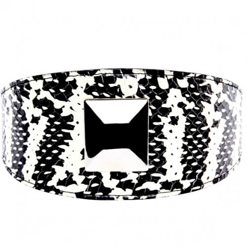 Off White/Black Snake With Gold Swarovski Crystal Hardware Collar & Leash Set