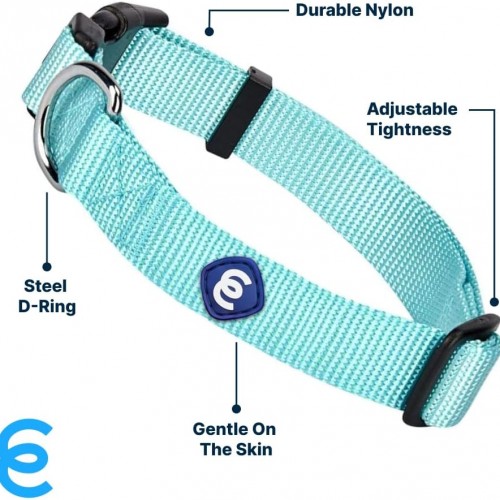 - Made with eco-friendly plastic buckles and high-density nylon webbing, this Mint Blue dog collar is not only stylish but also environmentally conscious.
