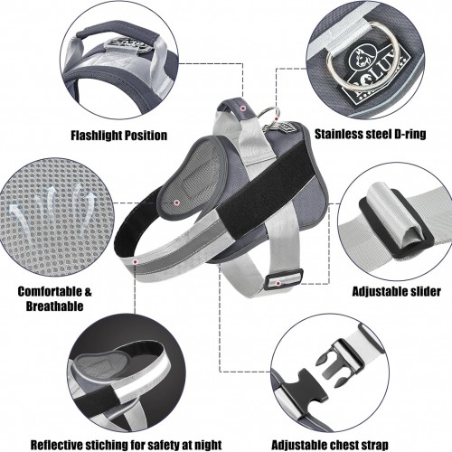 - OUTDOOR HEALTHY: Puppy no pull dog harness with reflective straps to ensure your dog is highly visible and keep dogs safe at night. You can connect the dog leash on the D-ring and with handle is easy to control on crowded streets. The high-end pet harness is perfect for daily walking, running, hiking, training, hunting, outdoor adventure and more!