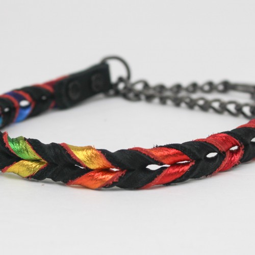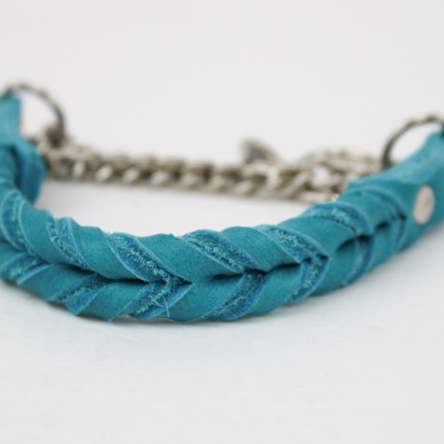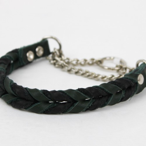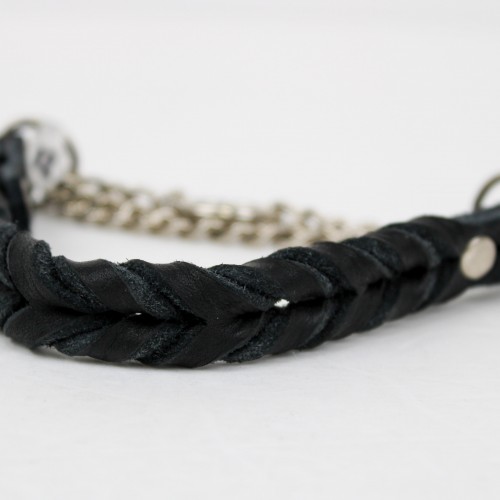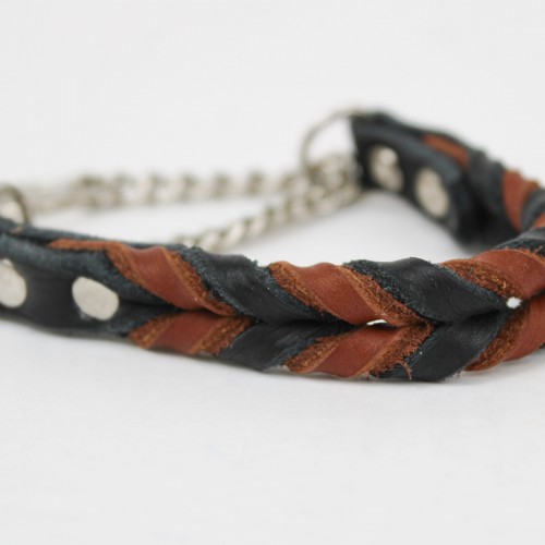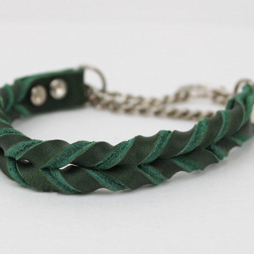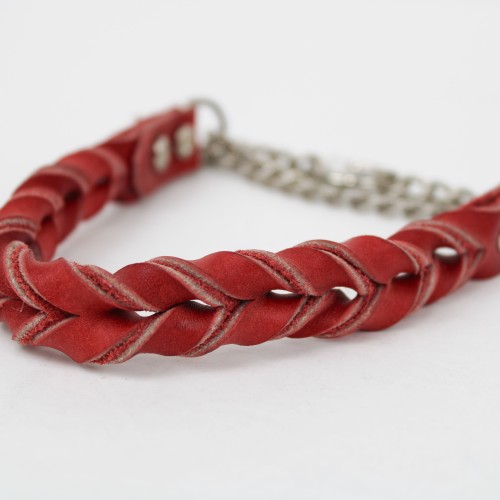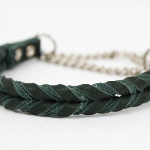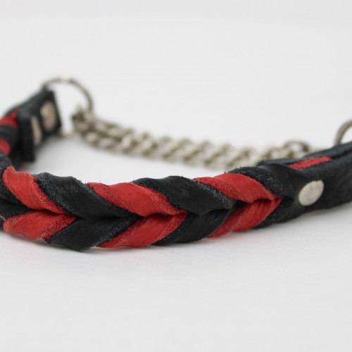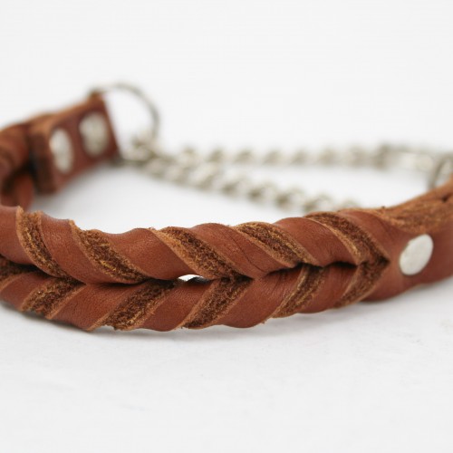 The Braided Leather Non Adjustable Martingale Collar should slip easily over the dog’s head, but not slip back over when the chain is taut. Measure the widest part of your dog’s head to ensure the collar will slip over the head and adjust comfortably around the neck. Contact us if you have sizing questions. Please measure using line #1 on our guide to assure an accurate fit. Go up to the closest size.