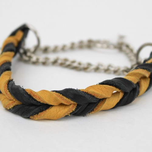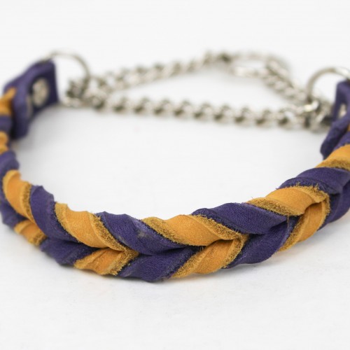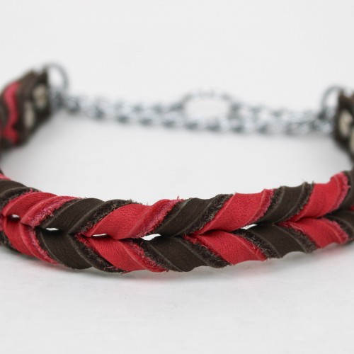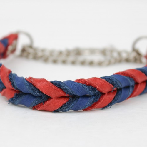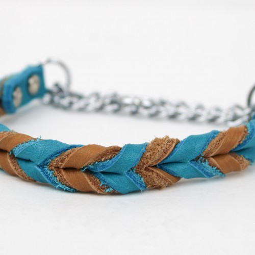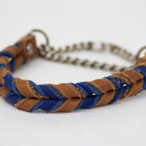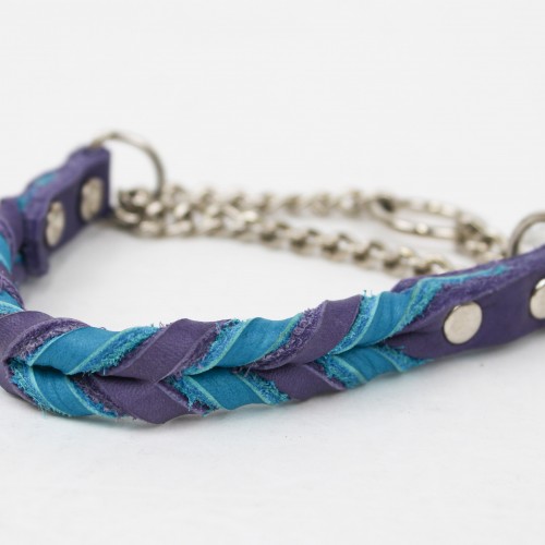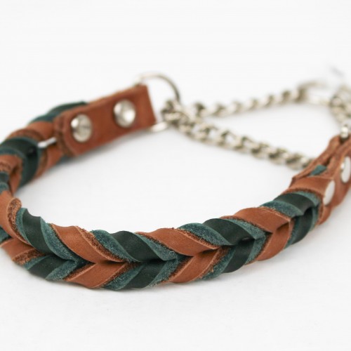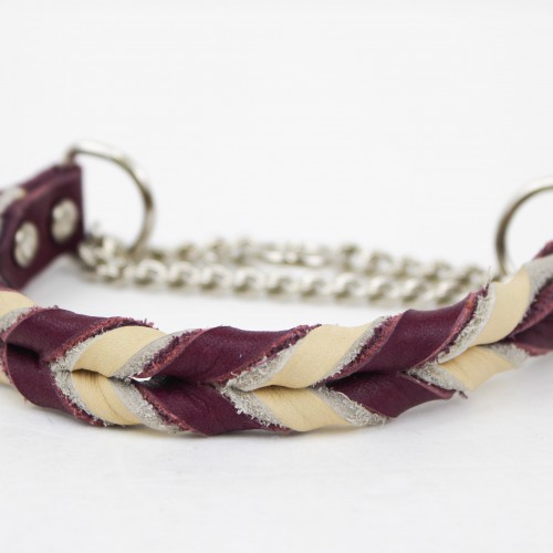 Super Soft Martingale Collars have comfortable flexibility with ultimate control and no fear of the dog slipping out of the collar. This leather is easy on the dog’s coat. We offer these collars in adjustable (with a buckle for easy on and off) as well. We also have matching leather leashes. If you see a combination, either color or size, that we don’t have listed, please reach out! All leather is handmade in our shop in Minnesota. The “primary” color will be the color that attaches to the chain. We reserve the right to reverse your primary and secondary options to increase the durability of the collar.