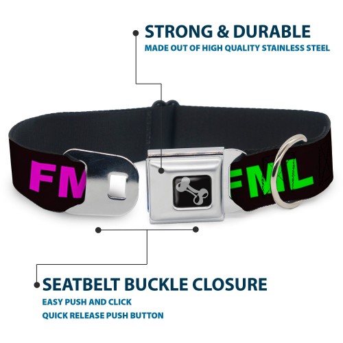 Buckle-Down Seatbelt Buckle Dog Collar – FML Black/Yellow/Green/Purple