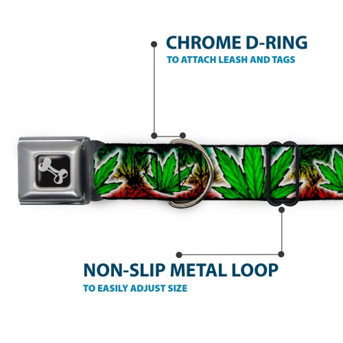 Buckle-Down Seatbelt Buckle Dog Collar – Marijuana Haze Rasta/White