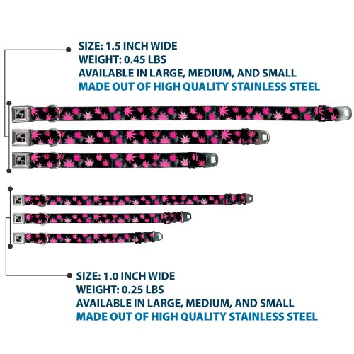 Buckle-Down Seatbelt Buckle Dog Collar – Pot Leaves/Smoke Black/Pink/White