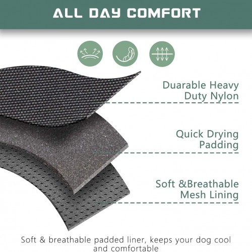 - 🐾DUARABLE & BREATHABLE MATERIAL: All Day Comfort.🐾 The heavy-duty vest made of soft cotton fabric with clear texture for the beautiful appearence. Extra durability and wear-ability, suitable for all field use. The soft padding can protect your dog’s skin, while the breathable air mesh keeps your dog ventilated and comfortable. We will protect the comfort and health of the dog together with you.