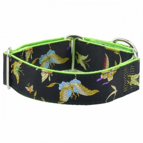 Butterfly Green – Silk Brocade Buckle Martingale Dog Collar