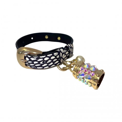 White & Gold Polka Dot Italian Leather Collar With Orante Italian Hardware