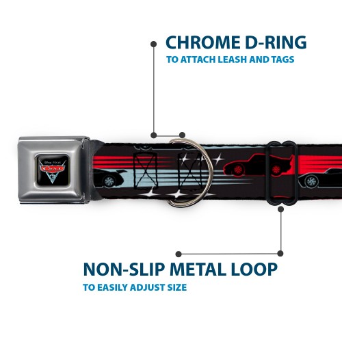 CARS 3 Emblem Full Color Black Silver Red Seatbelt Buckle Collar – Cars 3 Cars Stripes/Stars Grays/Blues/Reds