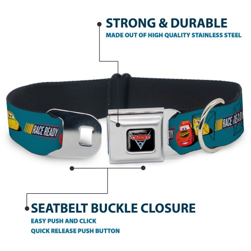 Cars 3 Piston Cup Champion Icon Full Color Red Black White Seatbelt Buckle Collar – Cars 3 Lightning McQueen/Cruz Ramirez Pose RACE READY Blue/Yellow/Red
