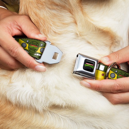 Classic TEENAGE MUTANT NINJA TURTLES Logo Full Color Seatbelt Buckle Collar – Classic TMNT Ninja Turtles Party Van All Sides Green/Yellow/Orange