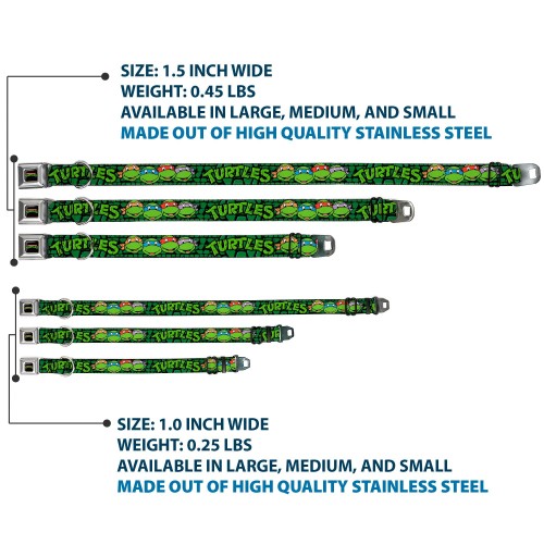 Classic TEENAGE MUTANT NINJA TURTLES Logo Seatbelt Buckle Collar – Classic Teenage Mutant Ninja Turtles Group Faces/TURTLES Turtle Shell Black/Green