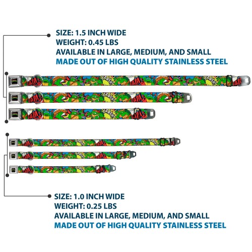 Classic TMNT Logo Full Color Seatbelt Buckle Collar – Classic Teenage Mutant Ninja Turtles Action Poses/Action Bubbles Dots Blues