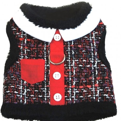 - Tweed Harness features: High End Tweed Fabric and Lined with Thick and Soft Minky Plush Fur. Real Mini Pocket, Buttons and White Collar.