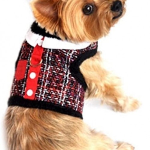 - Doggie Design Minky Harness Vest Jacket with Leash and paw themed button pin set. Choice of Tweed or Brocade Patterns.For Dog Sizes: XS thru L