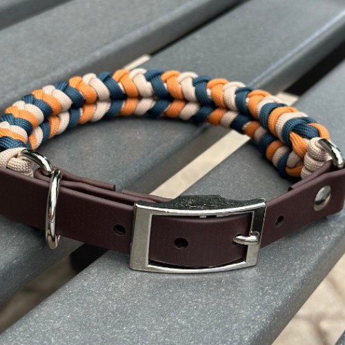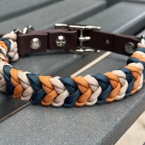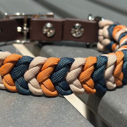 Coiled Charm Hand Braided Dog Collar in Mustard, Navy, & Light Tan