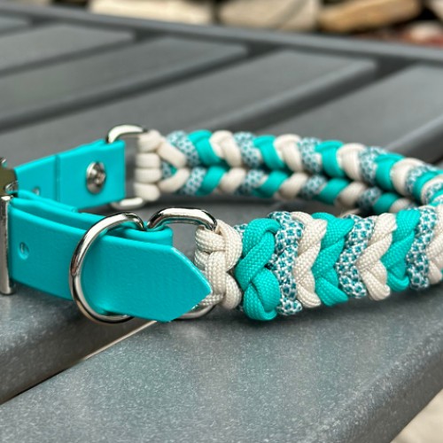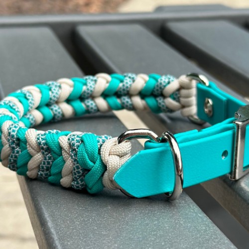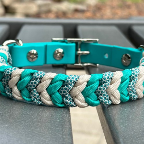 Crafted with care in Greenwood, Indiana, exclusively by Pawsh Pup Co. Each collar is handmade to order featuring premium American made paracord and BioThane® adapter, and braided by hand. These unique collars are stylish, durable, and only found here.