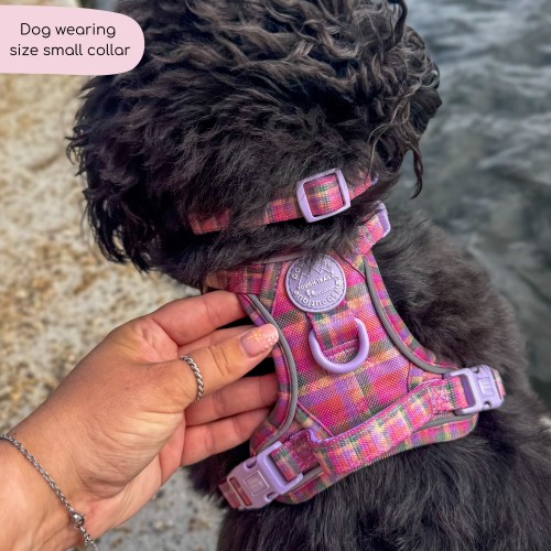 Add a splash of style to your pup’s adventures with the Tweed Sunset collection! Featuring a cozy plaid pattern in dreamy sunset hues of pink, peach, and lavender, this harness blends countryside charm with everyday comfort.