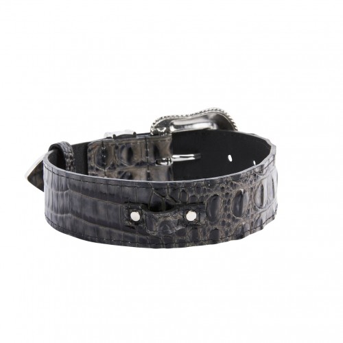 Dark Grey/Light Grey Embossed Croc Italian Leather Silver Swarovski Crystal Collar