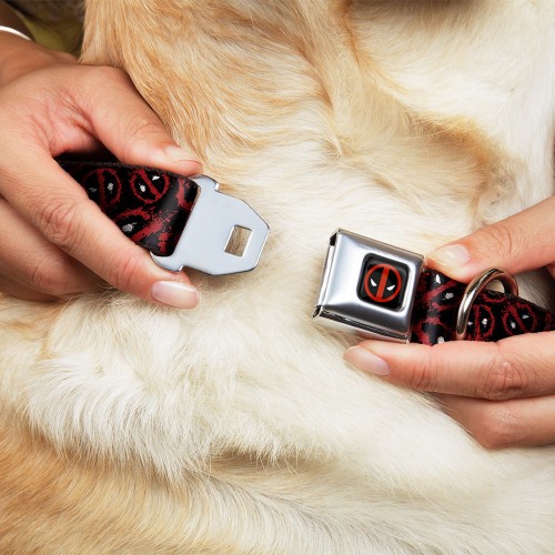 Deadpool Logo Black/Red/White Seatbelt Buckle Collar – Deadpool Splatter Logo Scattered Black/Red/White