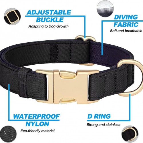 Didog Soft Padded Dog Collar for Large Dogs, Colorful and Durable Pet Collar with Quick Release Buckle, Light and Breathable for Daily Walking, Black, L