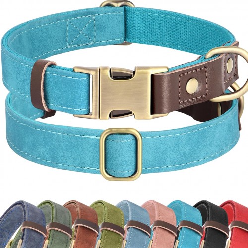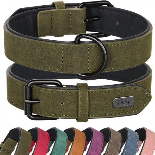 Didog Soft Padded Dog Collars for Medium Dogs, Lightweight and Breathable Dog Collar with Metal Buckle, Green, L