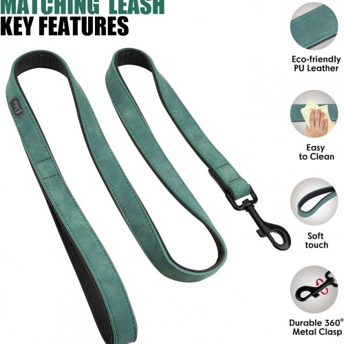 - Dog COLLAR AND LEASH SET: This cute dog collar is matched with a 4 FT leather dog leash, which can be 360° rotating, easily controlling the dog. The black metal adjusting buckle and double layer design is durable and convenient for your walking dogs. Soft padded handle also protect your hand better.