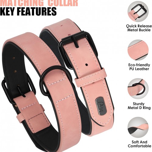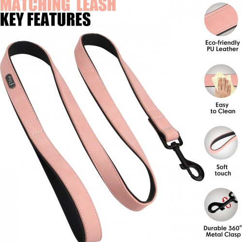 Didog Soft Padded Leather Dog Collar and Leash Set, Adjustable Pink and Breathable Pet Collars with 4FT PU Leather Dog Leash for Small Medium Large Dogs, Pink, L