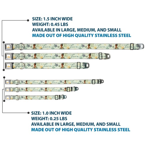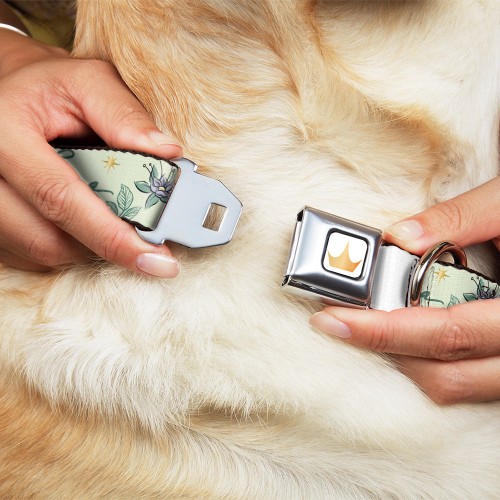 Disney Princess Crown Full Color Golds Seatbelt Buckle Collar – The Princess and the Frog Tiana Palace Pose with Script and Flowers Greens