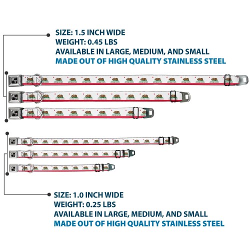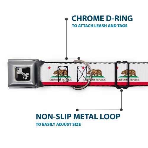 Dog Bone Black/Silver Seatbelt Buckle Collar – California Flag Continuous