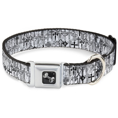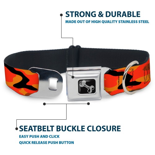 Dog Bone Black/Silver Seatbelt Buckle Collar – Camo Oranges/Black
