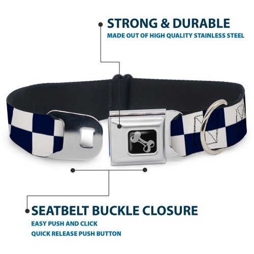 Dog Bone Black/Silver Seatbelt Buckle Collar – Checker Midnight Blue/White