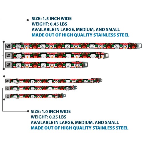 Dog Bone Black/Silver Seatbelt Buckle Collar – Christmas Penguin/Reindeer/Snowman Stripe Red/White/Black/Green