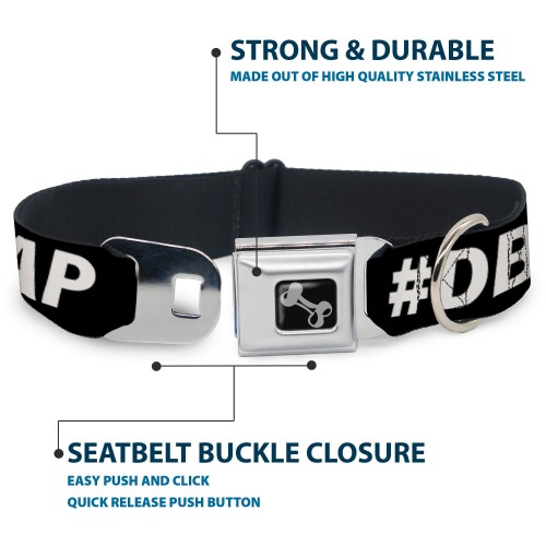 Dog Bone Black/Silver Seatbelt Buckle Collar – #DBAP Hash Tag Text Black/White