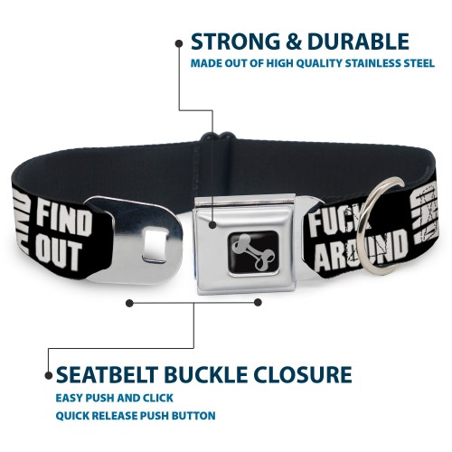 Dog Bone Black/Silver Seatbelt Buckle Collar – FAFO FUCK AROUND AND FIND OUT Bold Black/White