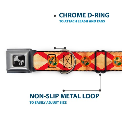 Dog Bone Black/Silver Seatbelt Buckle Collar – Florida Flag Continuous Vintage